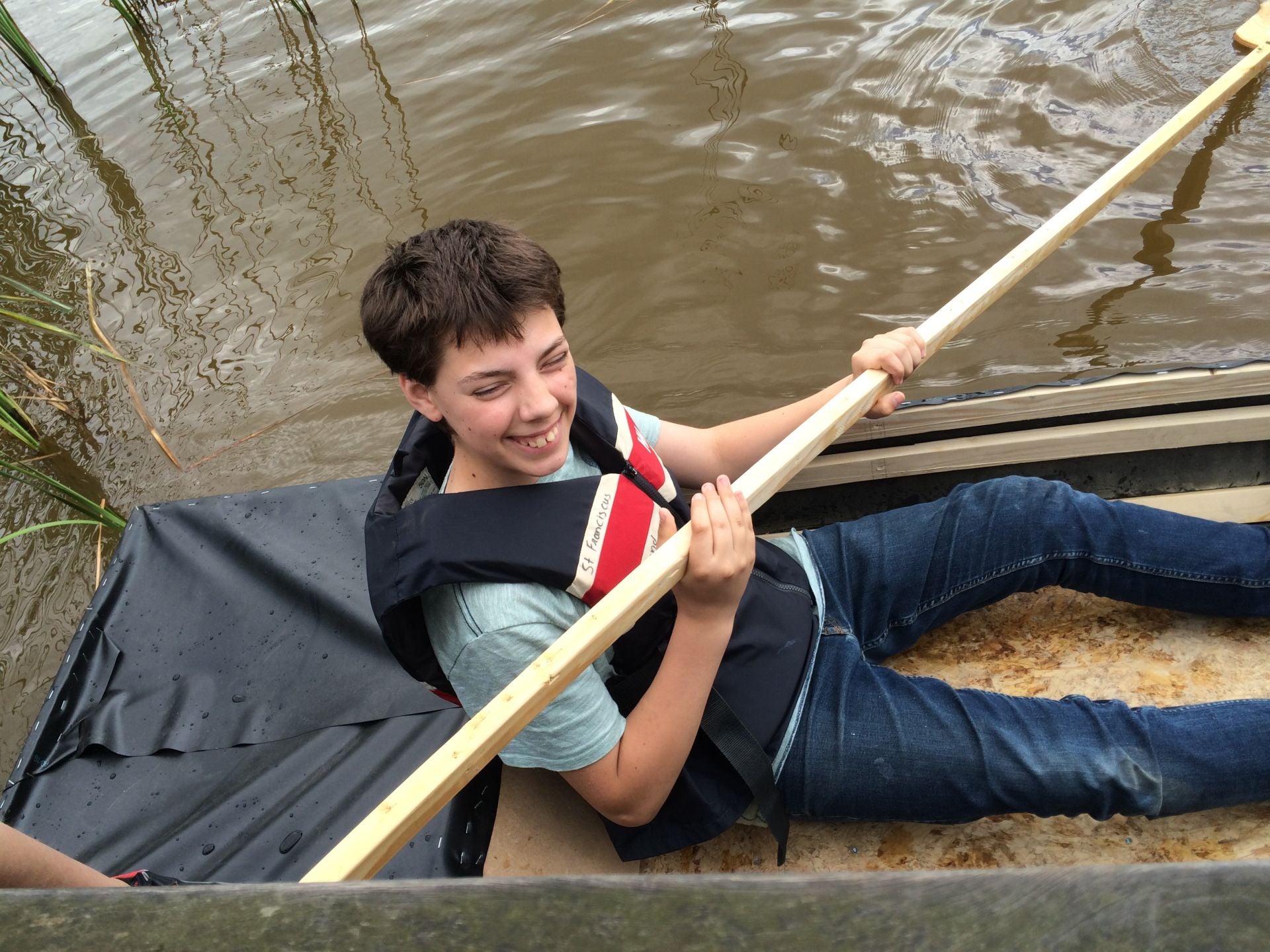 hier zit ik in een zelf gebouwde kano. op school hebben we ook uitjes gedaan zo als naar een bedrijf gaan bv. ETF